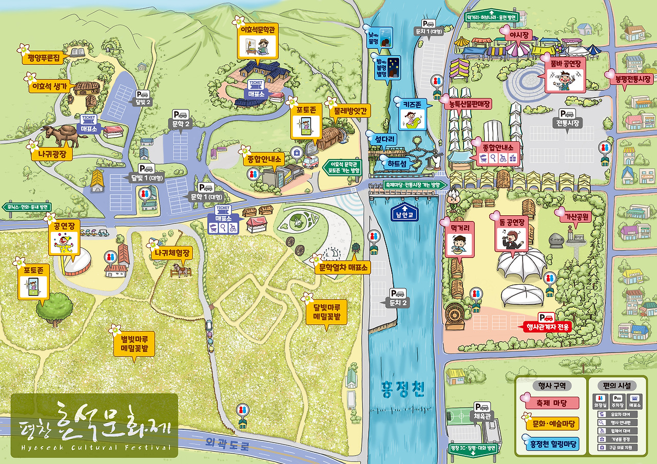 - 자가용 이용 시: 이효석문화예술촌 인근 공영주차장 이용 가능