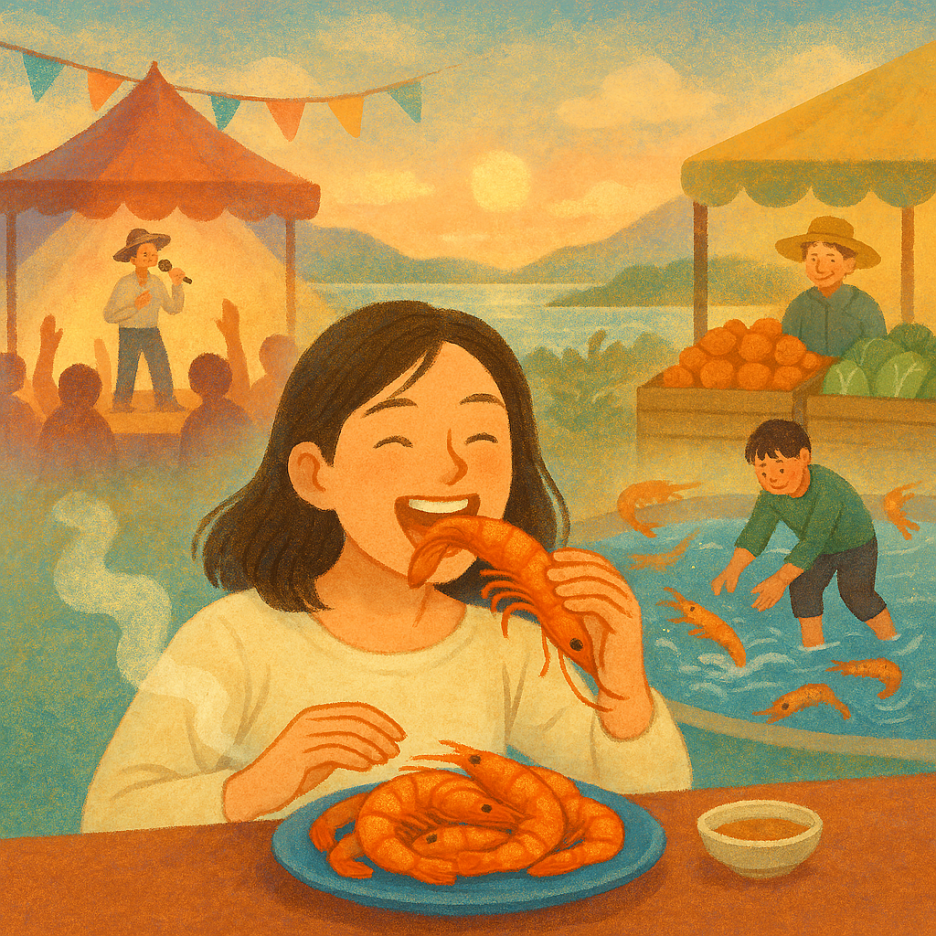 - 대하 회: 살아 있는 대하를 바로 회로 떠서 먹는 이색 경험. 쫄깃한 식감과 바다의 향이 그대로 살아 있다.